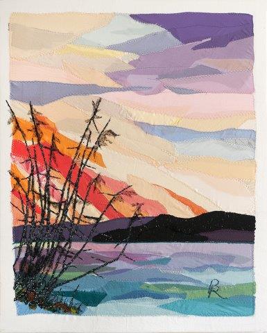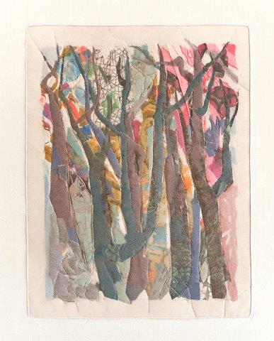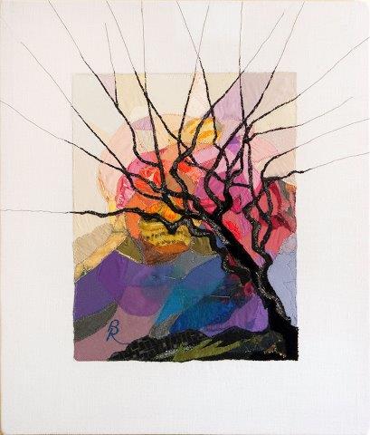 Un indispensable contact avec la matière Attirée par la peinture, elle s'est alors tournée vers une technique que l'on peut appeler "peinture textile". Elle crée d'étonnants tableaux de tissus pleins de charme et d'invention en tirant parti d'une grande variété d'étoffes.