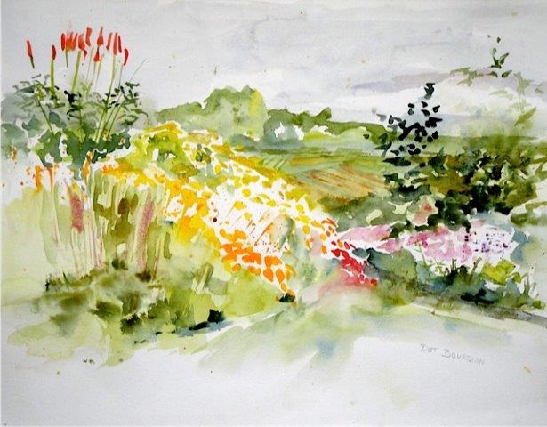 "Des aquarelles lumineuses et fluides, nettes aussi comme un paysage après la pluie. Il y a, dans les jaunes, les oranges et les verts de Dot Bourquin, une vibration subtile, une tendresse retenue, où la générosité des tons s’allie à l’élégance des compositions classiques. Son monde pictural est fait de chaleur, d’émotion, de gaieté, mais aussi d’un souci constant de pudeur, de distinction, du refus de céder au pathos ou à l’effet facile." Jean Kellerhals