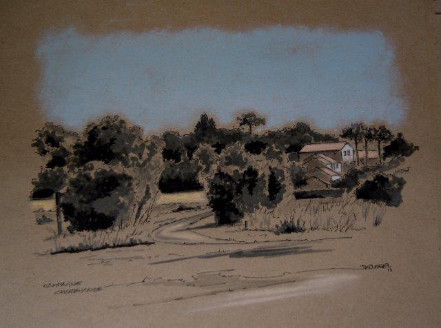 Ses paysages sont évocateurs du calme et de la sérénité de la nature si riche qui nous entoure. Il ne travaille pas en atelier: à la recherche de la lumière et de l’instant, il installe son chevalet en plein air et travaille sur le motif. Il s’exprime également avec le dessin à la plume, le dessin humoristique et par la mise en scène de pièces de théâtre.
