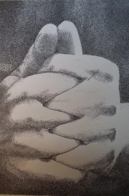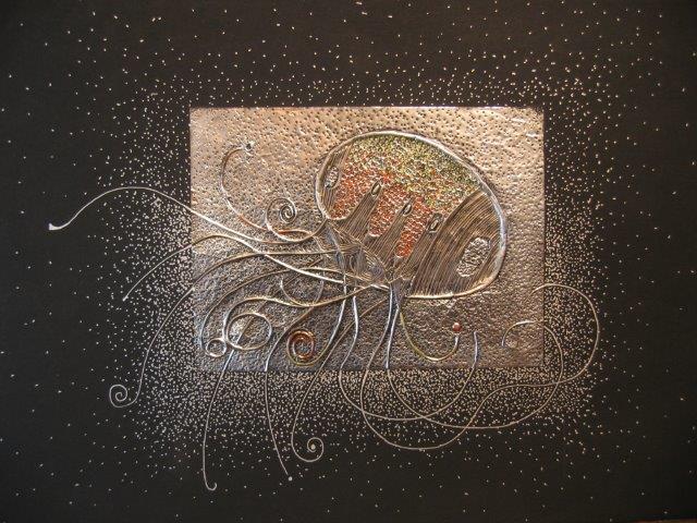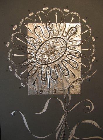 Mes techniques pratiquées actuellement sont : huile, peinture figurative et décorative, métal repoussé, aluminium, cuivre, plomb, collages de papiers tissés, dessins, avec points réalisés avec pointe fine.